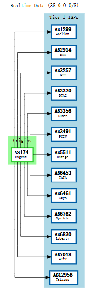 traceroute to 183.61.109.221, 30 hops max, 52 bytes payload, ICMP mode 1 * 2 154.54.161.249 AS174 [COGENT-BONE] Chicago Illinois United States cogentco.com be4904.rcr71.ord13.atlas.cogentco.com 2.29 ms 3 154.54.160.97 AS174 [COGENT-BONE] Chicago Illinois United States cogentco.com be5735.ccr41.ord01.atlas.cogentco.com 1.56 ms 4 154.54.165.133 AS174 [COGENT-BONE] Omaha Nebraska United States cogentco.com be5214.ccr31.oma02.atlas.cogentco.com 9.54 ms 5 154.54.165.77 AS174 [COGENT-BONE] Denver Colorado United States cogentco.com be3802.ccr21.den01.atlas.cogentco.com 22.04 ms 6 154.54.167.137 AS174 [COGENT-BONE] Salt Lake City Utah United States cogentco.com be5821.ccr31.slc01.atlas.cogentco.com 29.56 ms 7 154.54.167.142 AS174 [COGENT-BONE] Los Angeles California United States cogentco.com be5822.ccr21.sfo01.atlas.cogentco.com 45.78 ms 8 154.54.43.10 AS174 [COGENT-BONE] San Jose California United States cogentco.com be3669.ccr41.sjc03.atlas.cogentco.com 47.17 ms 9 38.104.138.106 AS174 Santa Clara California United States cogentco.com 55.72 ms 10 202.97.43.121 AS4134 [CHINANET-BB] Guangzhou Guangdong Province China www.chinatelecom.com.cn 电信 208.08 ms 11 202.97.91.189 AS4134 [CHINANET-BB] Guangzhou Guangdong Province China www.chinatelecom.com.cn 电信 223.82 ms 12 * 13 * 14 * 15 * 16 * 17 * 18 * 19 * 20 * 21 * 22 * 23 * 24 * 25 183.61.109.221 AS4134 [APNIC-AP] Guangzhou Guangdong Province China 海珠区 www.chinatelecom.com.cn 电信