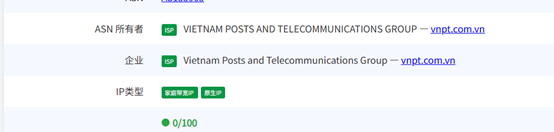 多次网站测试数据为双ISP的越南运营商的IP