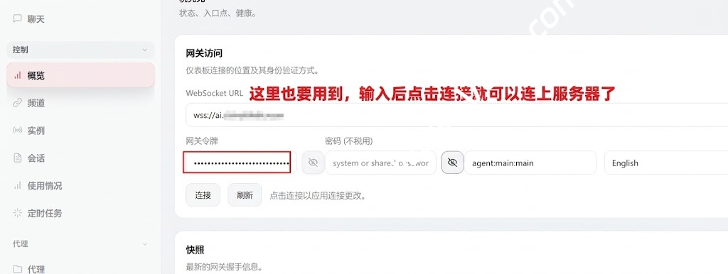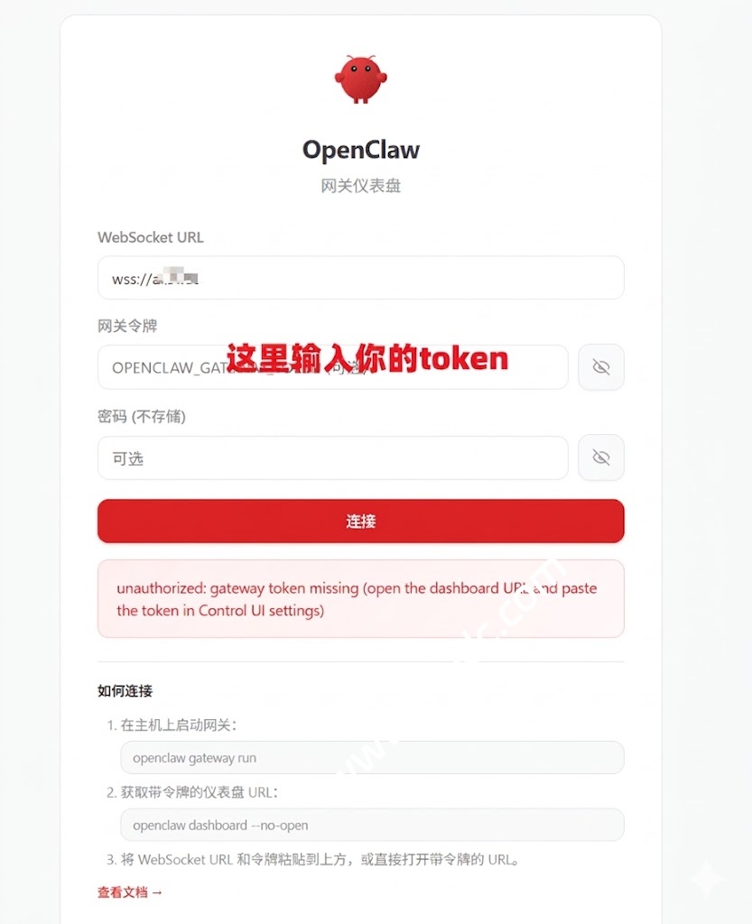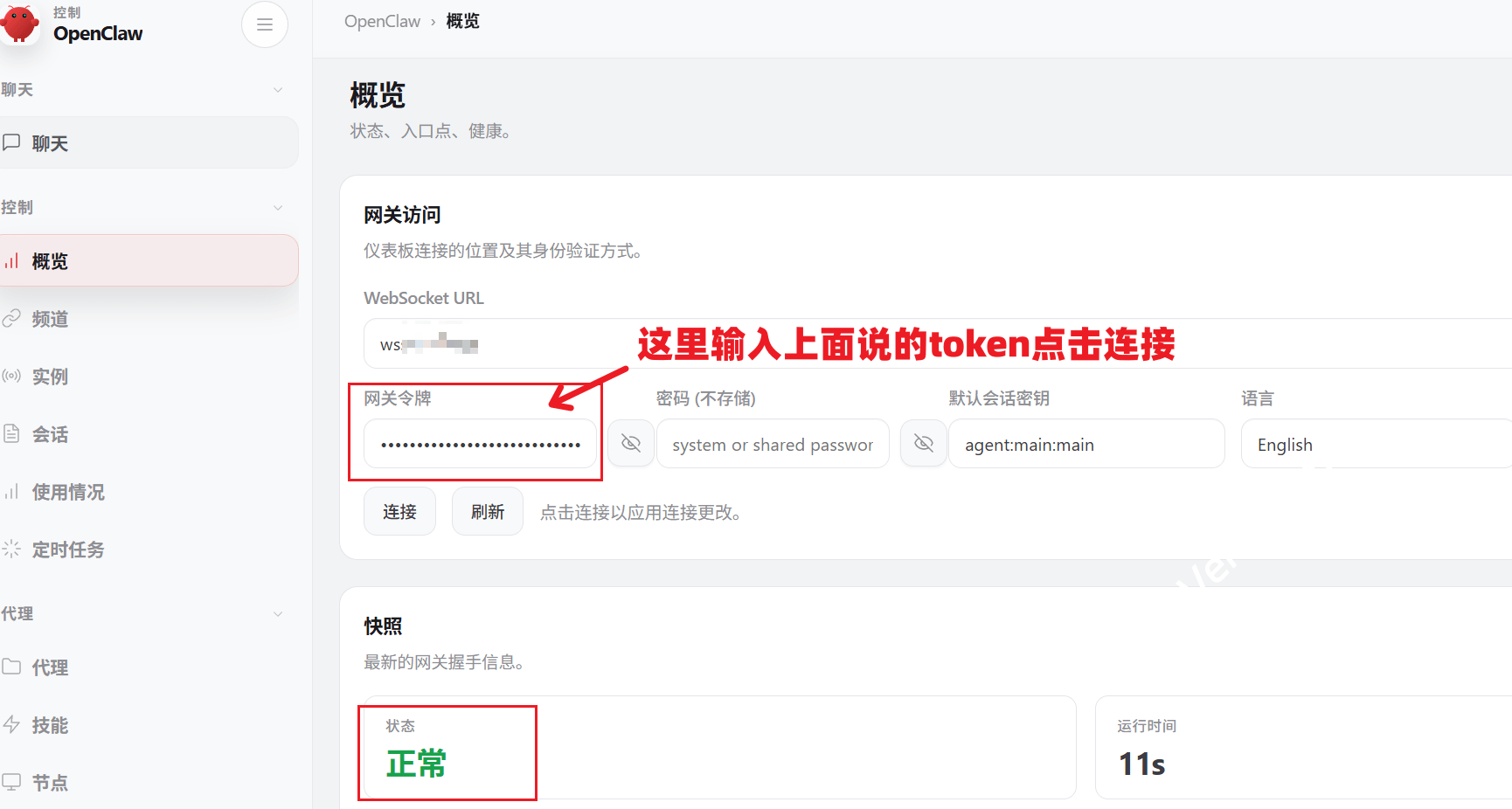 设置好后,就可以使用域名访问啦,注意登录时,还是需要输入上面说的token也就是网关令牌。