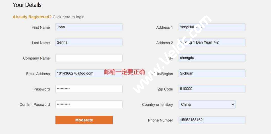 进入订单页面后,填写用户和邮箱信息: